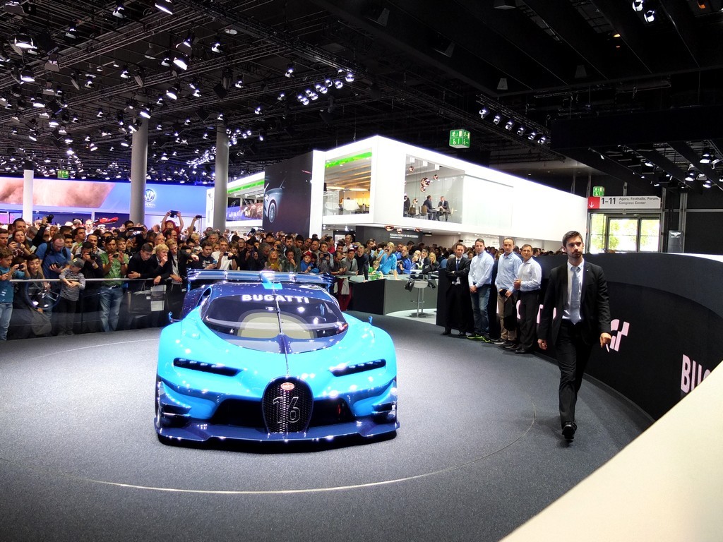 Oui c’est ironique mais comme à son habitude la moitié du stand de la marque est protégée par un muret d’1.5m de haut (peut être un peu plus j’ai pas sorti mon mètre ruban pour vérifier) … ce qui fait que la bataille fait rage pour pouvoir voir ce que cache le stand sur les parties ouvertes… On devrait être habitué mais en fait je suis juste blasée, donc un mauvais point pour Bugatti.