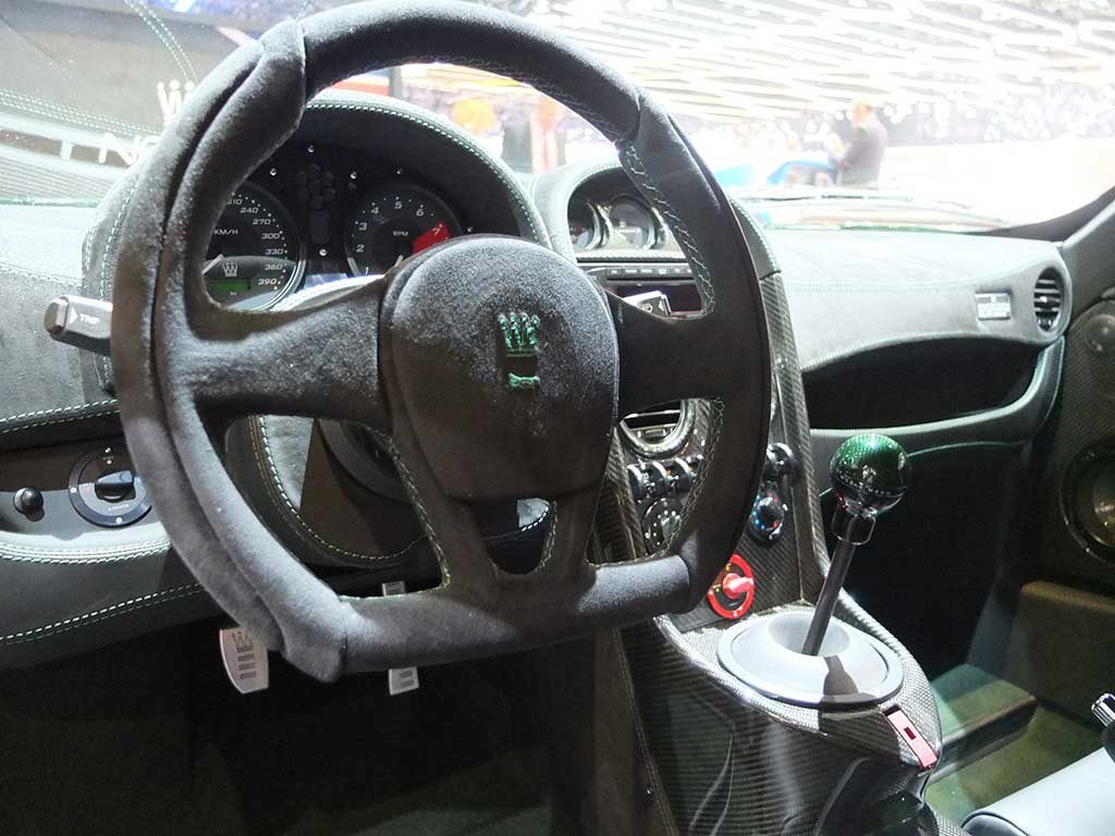 Juste à coté se trouve la pas très discrète Agera RS Gryphon … full carbone avec de l’or 24 carats. Celle là serait la voiture d’un client américain, j’aurais pourtant juré que cela ne pourrait plaire qu’à la clientèle des Emirats. Bref une version qui ne passe pas partout, il faut dire qu’avec 1395ch autant afficher la couleur… un ratio poids puissance à 1 … ça calme.
