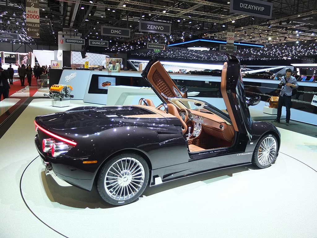 Pour moi cette marque est un vrai zombie, j’arrive jamais vraiment à savoir si elle est morte ou vivante. Elle est toujours un peu dans un état entre deux, entre la renaissance mais toujours avec une épée de Damoclès au dessus de la tête. Cette année Spyker nous présente la C8 Preliator Spyder un cabriolet avec moteur Koenigsegg de 600ch, déclinaison du coupé présenté l’année dernière.