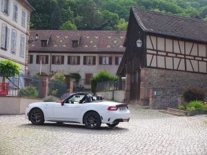 Ce double essai de l’Abarth 124 Spider et de la 595 Pista était un vrai plaisir, à la fois parce qu’il se déroulait en local pour moi (en prime pas de réveil aux aurores pour une fois) sur les magnifiques routes entre les cols vosgiens et l’Alsace (sur les traces du rallye du même nom) et que ça faisait un moment que je n’avais pas conduit des petites essences aux sonorités envoûtantes. Alors finalement rien qu’avec l’introduction on pourrait croire que j’ai déjà tout dit mais je vous invite à pousser la lecture un peu plus loin.
