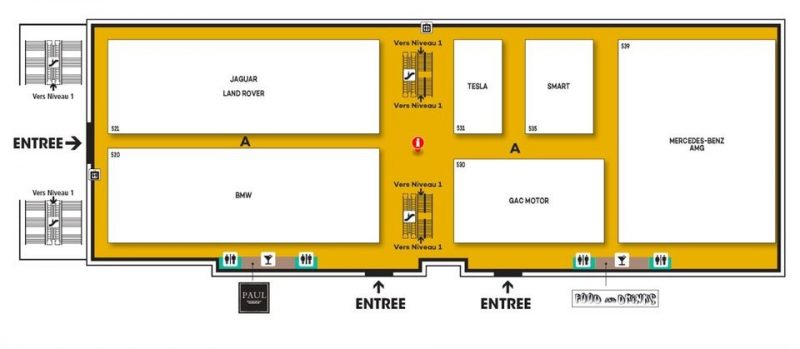 Alors qu’il y a deux ans la marque avait un stand dans le hall 1, cette année c’est dans le hall 5.2 que Tesla attirera les intéressés et curieux. Je ne sais pas pourquoi, mais je trouve le choix assez marrant, et ce n’est probablement pas un hasard que le stand Tesla se situe entre celui de Jaguar / Land Rover et de Smart / Mercedes. En Face on retrouve le constructeur chinois GAC et un peu en décalé le stand BMW. On pourrait croire que la marque cherche un peu à chatouiller certains constructeurs en particulier, enfin je dis ça je dis rien 😉