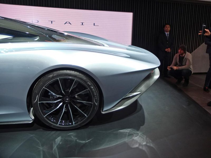 Reste que si je ne suis pas emballée devant cette proposition, il y a plusieurs petits détails surprenant sur la Speedtail : les retroviseurs retractables (pas convaincue), le cockpit à 3 places dont la place du conducteur au centre (pour la facilité d’accès on repassera) et le fait que l’arrière est fait de carbone flexible qui se déforme pour créer une sorte de spoiler actif (ça par contre c’est une dinguerie).